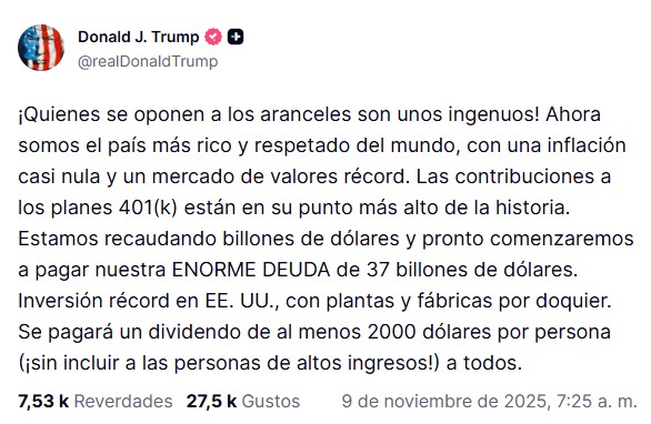 La propuesta de Trump no es la primera de su tipo. A lo largo de este año, el presidente ha sugerido pagos directos de entre 1.000 y 2.000 dólares, ligados a los ingresos de los aranceles. Sin embargo, estas iniciativas no se concretaron, mientras que el déficit fiscal siguió aumentando. La actual propuesta de Trump sobre el “dividendo” de 2.000 dólares refleja la constante tensión entre las promesas de apoyo económico directo y las realidades fiscales y judiciales del país.